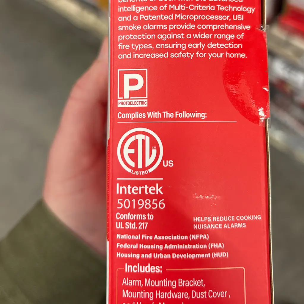 It’s easy to spot a certified smoke alarm when you’re shopping at a brick-and-mortar outlet: It’ll say so on the packaging, usually with a logo from UL or ETL or phrasing like “conforms to UL 217.” The compliance label will also be printed on the alarm itself. Fire inspectors look for these badges when they’re in the field, so an unlabeled alarm is essentially noncompliant. “People just need to be able to pull down that alarm and look for that certification,” Browning said.